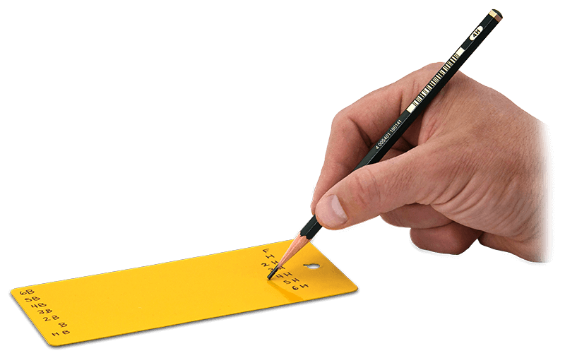 The PosiTest PT measures the hardness of coatings and films using the Pencil Hardness (Wolff-Wilborn) method in accordance with ISO 15184 and ASTM D3363.